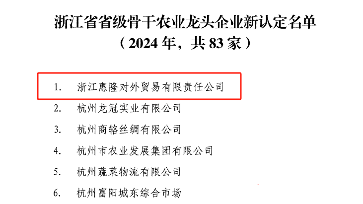 新認(rèn)定!浙江惠隆獲評(píng)省級(jí)骨干農(nóng)業(yè)龍頭企業(yè)稱(chēng)號(hào)