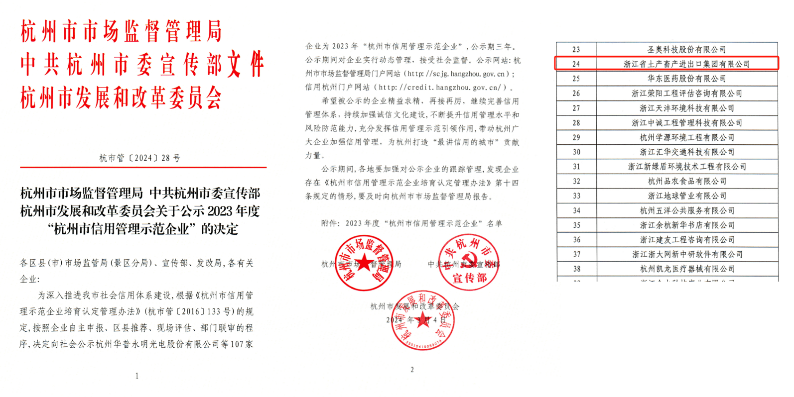 浙江土畜榮獲2023年度“杭州市信用管理示范企業(yè)”稱(chēng)號(hào)