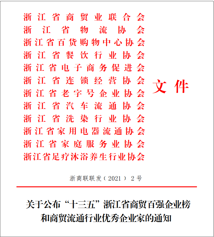 浙江土畜榮登“十三五”浙江省商貿(mào)百強企業(yè)榜