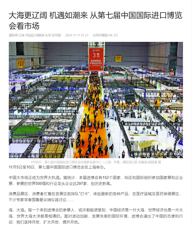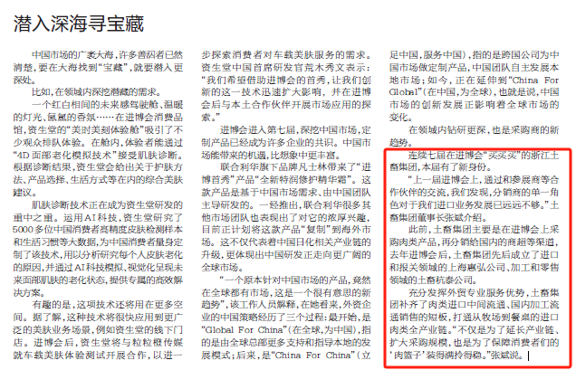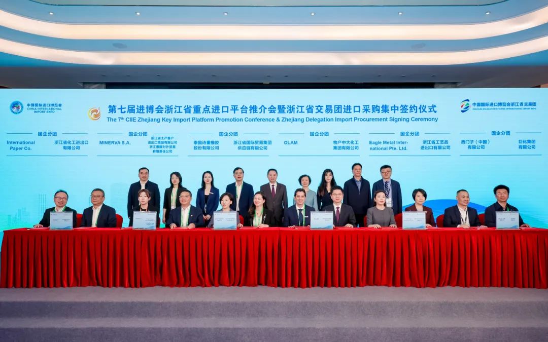 11月5日至10日,第七屆中國國際進(jìn)口博覽會(進(jìn)博會)在上海國家會展中心舉辦。本屆進(jìn)博會以“新時代,共享未來”為主題,吸引了來自152個國家、地區(qū)和國際組織的參展商。浙江土畜組織旗下6家企業(yè)的30余名代表積極參會。浙江日報、潮新聞、浙江衛(wèi)視、浙江國資等多家媒體對浙江土畜參會進(jìn)行了報道。