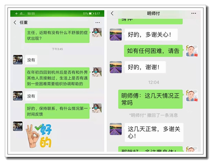 人力資源部孫陽瑯每天加班加點(diǎn)匯總統(tǒng)計(jì)各成員公司上千名員工的疫情日?qǐng)?bào)信息,并根據(jù)不斷發(fā)展的疫情變化,反復(fù)調(diào)整修改“一人一表”調(diào)查問卷,對(duì)個(gè)別情況復(fù)雜的員工逐一電話聯(lián)系、叮囑,做到底數(shù)摸清、情況了然,為公司采取各項(xiàng)管控措施提供了有力的決策依據(jù)。家里的孩子心中牽掛,就發(fā)來視頻提醒爸爸疫情期間要注意休息,才能提高自身抵抗力降低感染風(fēng)險(xiǎn)。
