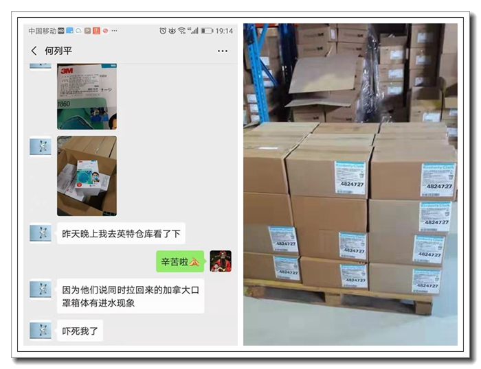 左圖為醫(yī)用防濺屏口罩 右圖為口罩運輸跟蹤單