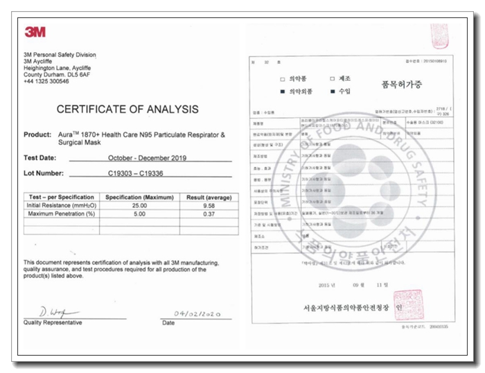 2.韓國3M1860 /1870+口罩1800個 2月8日已到貨入庫。