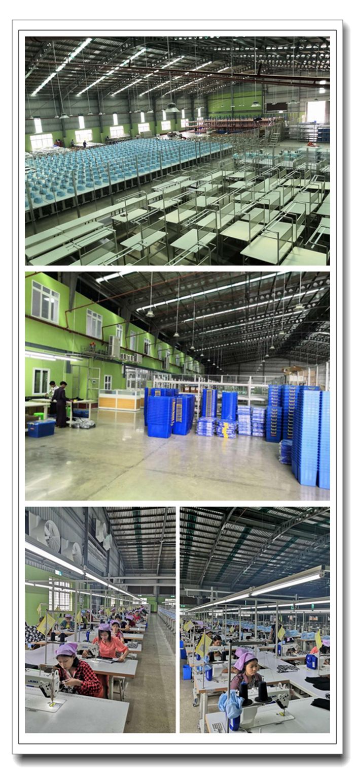 惠元緬甸制衣廠注冊(cè)200萬(wàn)美元,占地面積8000平方米,共有16條生產(chǎn)線,設(shè)計(jì)年生產(chǎn)能力100萬(wàn)件。工廠整體布局合理、環(huán)境干凈整潔、管理科學(xué)嚴(yán)謹(jǐn),投產(chǎn)初始階段計(jì)劃共招聘1100人,在產(chǎn)生經(jīng)濟(jì)效益的同時(shí),也將很好地解決本地人就業(yè)問(wèn)題,有助于促進(jìn)中緬兩地的溝通與交流。目前廠區(qū)各類生產(chǎn)設(shè)備已全部安裝調(diào)試完畢,大部分新招聘員工經(jīng)過(guò)培訓(xùn)后已具備獨(dú)立上崗操作能力,一起合作的中緬員工友好互助、氣氛融洽。