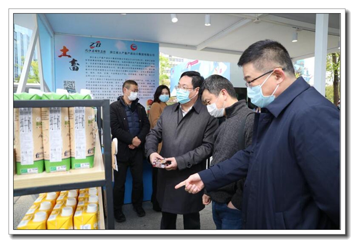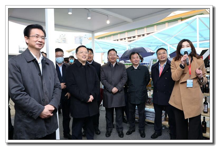 開幕日上午,省政府副秘書長高屹,省商務廳廳長盛秋平,下城區(qū)委書記劉穎等領導在省國貿(mào)集團黨委委員、副總經(jīng)理黃道領,浙江土畜總經(jīng)理楊躍勝的陪同下,蒞臨公司展位,現(xiàn)場觀看公司斯托卡羅紅酒在阿里平臺上的“云拍賣”活動。黃總代表國貿(mào)集團向到場的嘉賓們詳細介紹了浙江土畜進口的牛肉、紅酒和牛奶等產(chǎn)品。近年來,浙江土畜依托互聯(lián)網(wǎng)科技和武林商圈黨建聯(lián)盟豐富的企業(yè)資源,積極培育進口產(chǎn)品的新零售模式,努力促進傳統(tǒng)商貿(mào)業(yè)務云轉(zhuǎn)型。