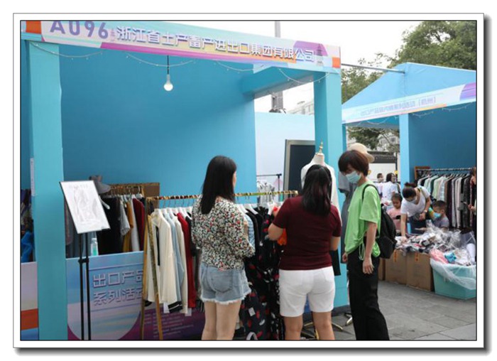 7月25日-31日,由商務(wù)部、浙江省政府共同主辦的全國首場“外貿(mào)優(yōu)品匯,扮靚步行街”出口產(chǎn)品轉(zhuǎn)內(nèi)銷活動周在首批全國示范步行街杭州湖濱步行街舉行。浙江土畜高度重視,堅決貫徹國家構(gòu)建國內(nèi)國際雙循環(huán)的決策部署,加快開拓出口轉(zhuǎn)內(nèi)貿(mào)渠道,總經(jīng)理楊躍勝主持召開活動前期會議,動員組織5個出口業(yè)務(wù)部精心選品、積極參與。本次活動公司8個展位銷售箱包、服裝、遮陽傘、口罩、保溫杯、香薰等優(yōu)質(zhì)出口產(chǎn)品,累計實現(xiàn)銷售額近12萬元。