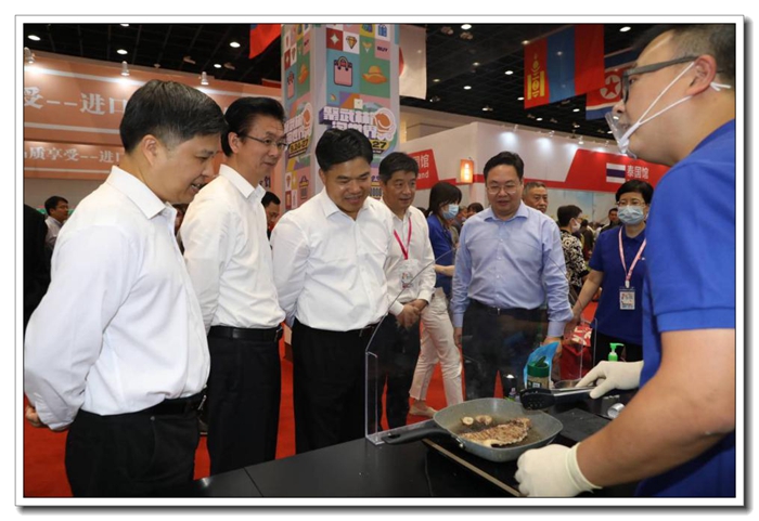 開幕日上午,浙江省商務(wù)廳黨組書記、廳長(zhǎng)盛秋平,黨組副書記、副廳長(zhǎng)、一級(jí)巡視員韓杰,下城區(qū)委書記劉穎在省國(guó)貿(mào)集團(tuán)黨委委員、副總經(jīng)理黃道領(lǐng),公司黨委書記、董事長(zhǎng)張斌的陪同下,蒞臨公司展位,詳細(xì)了解公司銷售火爆的西班牙橄欖油、巴西牛肋排和捷克牛奶等產(chǎn)品。盛廳長(zhǎng)指出,浙江土畜要堅(jiān)決扛起國(guó)企擔(dān)當(dāng),發(fā)揮進(jìn)出口專業(yè)優(yōu)勢(shì)、渠道優(yōu)勢(shì)、貨源優(yōu)勢(shì),加強(qiáng)現(xiàn)場(chǎng)營(yíng)銷宣傳,抓住我國(guó)對(duì)澳洲紅酒反傾銷契機(jī),推動(dòng)公司澳洲紅酒銷售,加快培育民生類進(jìn)口產(chǎn)品國(guó)內(nèi)市場(chǎng),暢通國(guó)內(nèi)大循環(huán)。