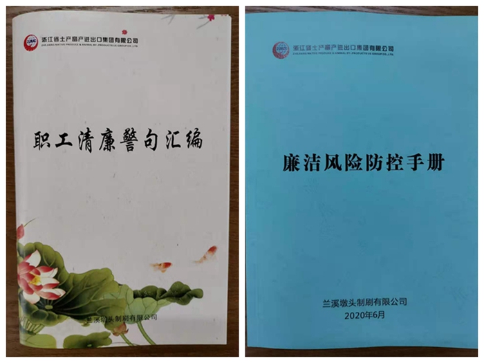 作為浙江省土畜公司下屬開展鬃刷產(chǎn)品研發(fā)和加工生產(chǎn)的骨干工廠,蘭溪墩頭制刷有限公司的效益在同行業(yè)的排名中一直遙遙領先?!敖陙恚S圍繞生產(chǎn)經(jīng)營實際,從風險管理鏈條化、風險監(jiān)督公開化、風險防控信息化三方面,努力推進清廉建設進車間、進班組、進崗位?!痹邳h支部書記徐統(tǒng)一看來,該廠一直將廉潔風險防控融入工廠管控的努力在其中功不可沒。