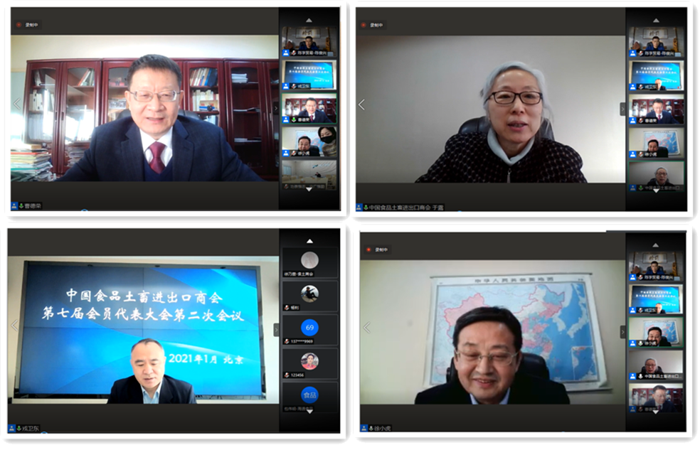 根據(jù)中國食品土畜進(jìn)出口商會章程規(guī)定和工作安排,考慮到當(dāng)前新冠疫情防控總體要求,2021年1月26日,食土商會以線上視頻會議方式召開了第七屆會員代表大會第二次會議。本次會議應(yīng)到會員代表265名,實到代表189名,超過應(yīng)到代表的三分之二,符合商會章程規(guī)定人數(shù)。