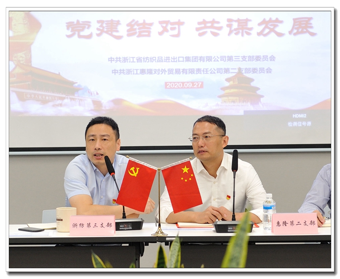 省紡集團(tuán)第三黨支部書記、總經(jīng)理助理胡疆同志就黨建共建工作談了下自身的感悟,并介紹了所分管的子公司億德公司從做外貿(mào)中間商到與知名零售商合作再至“三元合作”商業(yè)模式的艱苦奮斗歷程,以及億德公司以環(huán)保為切入點(diǎn),迎合新時(shí)代青年的需求導(dǎo)向,拓展環(huán)保服飾內(nèi)外貿(mào)結(jié)合的業(yè)務(wù)新方向。施董隨后補(bǔ)充介紹了省紡集團(tuán)在尼日利亞海外倉(cāng)的規(guī)劃布局。