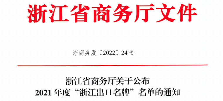 近日,浙江省商務廳公布了2021年度“浙江出口名牌”評選結果。經(jīng)過材料組織遞交、專家審核、相關部門意見征求、社會公示等6個多月的申報評審流程,…