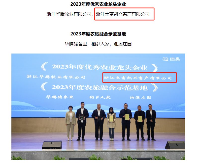 3月23日上午,洲泉鎮(zhèn)召開2024年經(jīng)濟(jì)高質(zhì)量發(fā)展工作推進(jìn)會暨拼招商、攻項目、優(yōu)環(huán)境動員部署會,充分肯定了浙江土畜凱興畜產(chǎn)有限公司(以下稱凱興畜產(chǎn))過去一年穩(wěn)健經(jīng)營和創(chuàng)新發(fā)展成果,并授予凱興畜產(chǎn)洲泉鎮(zhèn)2023年度“十佳工業(yè)企業(yè)”和“優(yōu)秀農(nóng)業(yè)龍頭企業(yè)”雙重榮譽。