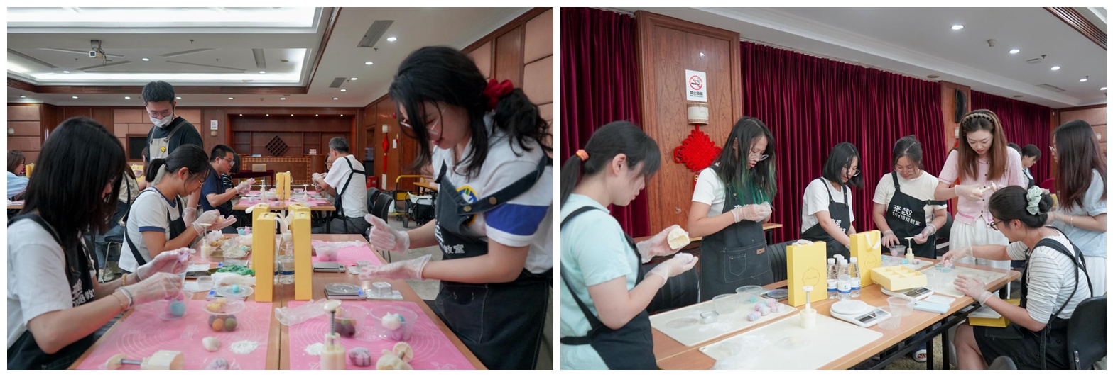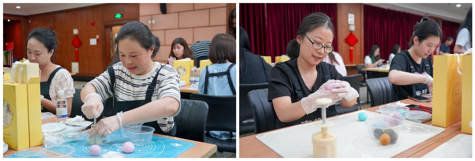 活動現(xiàn)場,清甜的餡料香與歡聲笑語交織縈繞,員工們紛紛動手體驗(yàn)冰皮月餅的制作過程。從揉皮、包餡到壓模成型,大家專注投入,巧手為媒,共織一場穿越古今的中秋綺夢。