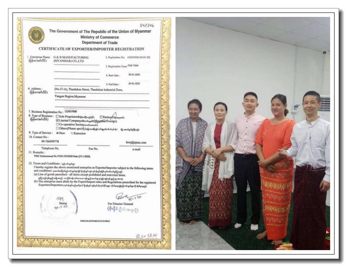 惠元緬甸工廠進(jìn)出口證書 經(jīng)營(yíng)團(tuán)隊(duì)(左二總經(jīng)理汪明霞)