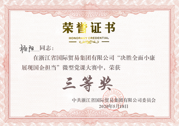 5月18日下午,省國貿(mào)集團第四屆微型黨課大賽在19樓會議廳隆重舉行,來自各成員公司的19名參賽選手緊緊圍繞“決勝全面小康、展現(xiàn)國企擔(dān)當(dāng)”的主題,結(jié)合不同崗位、不同業(yè)態(tài)、不同角度,從細(xì)微處談起,從個人閱歷談起,從公司發(fā)展談起,從理想信念談起,或表達奮斗心聲,或介紹身邊典型,或抒發(fā)祝福情感,用“演”與“講”的才情與智慧,讓現(xiàn)場觀眾備受鼓舞,喚起了大家的思考與共鳴,得到了專家評委們的高度肯定,我公司參賽選手楊陽最終榮獲大賽三等獎。